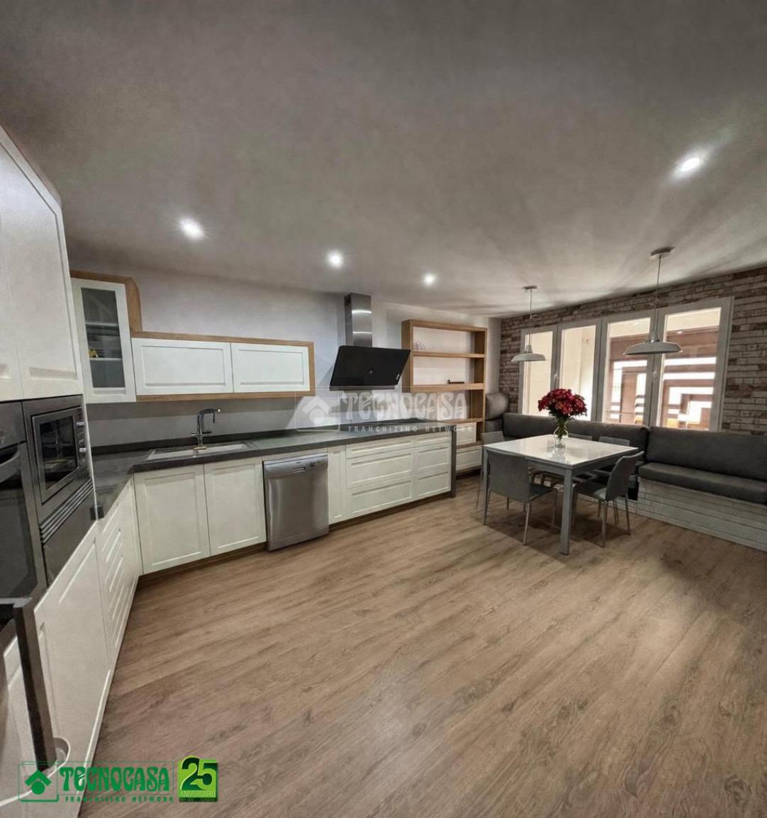 Cocina campera con CHIMENEA completamente funcional, cocina COMPLETA, y una segunda área destinada a SALÓN, en esta planta encontramos también la cochera que podría abarcar 3 vehículos y un baño completo con plato de ducha.