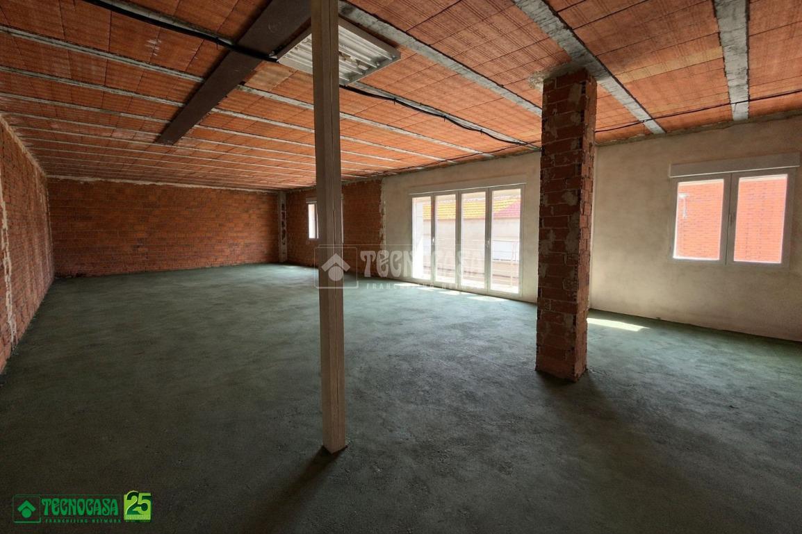 Se encuentra completamente en bruto pero con todas las instalaciones listas para enlucir. Cuenta con dos grandes ventanales y un balcón. El área tiene dos dormitorios ya diferenciados y dos grandes estancias divididas por un tabique. Ademas en la parte superior encontramos una terraza completamente funcional y amplia donde encontramos un depósito de agua.