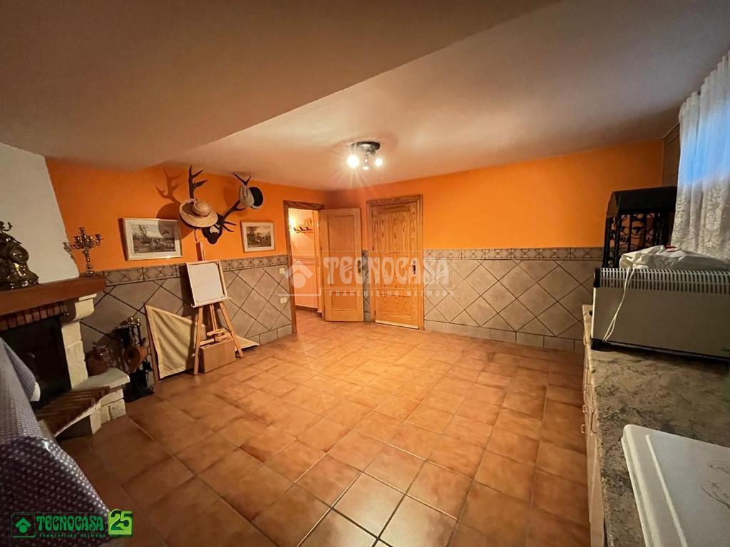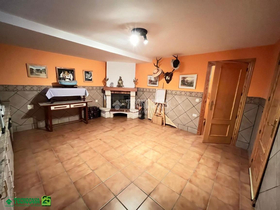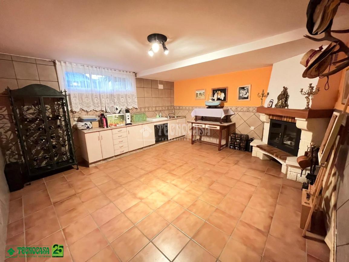 Planta -1: Cocina campera con CHIMENEA, dormitorio con zona de vestidor, aseo, GARAJE con zona de almacenamiento y patio de unos 25m.