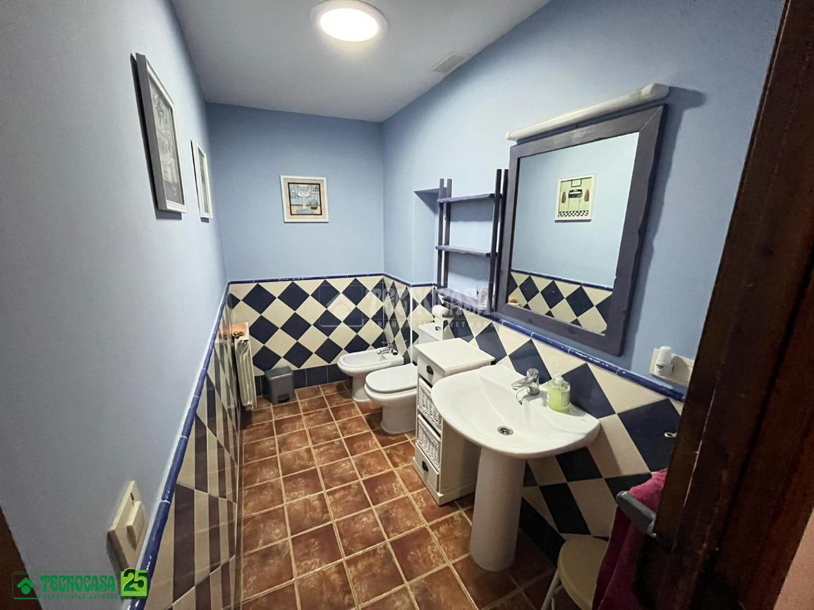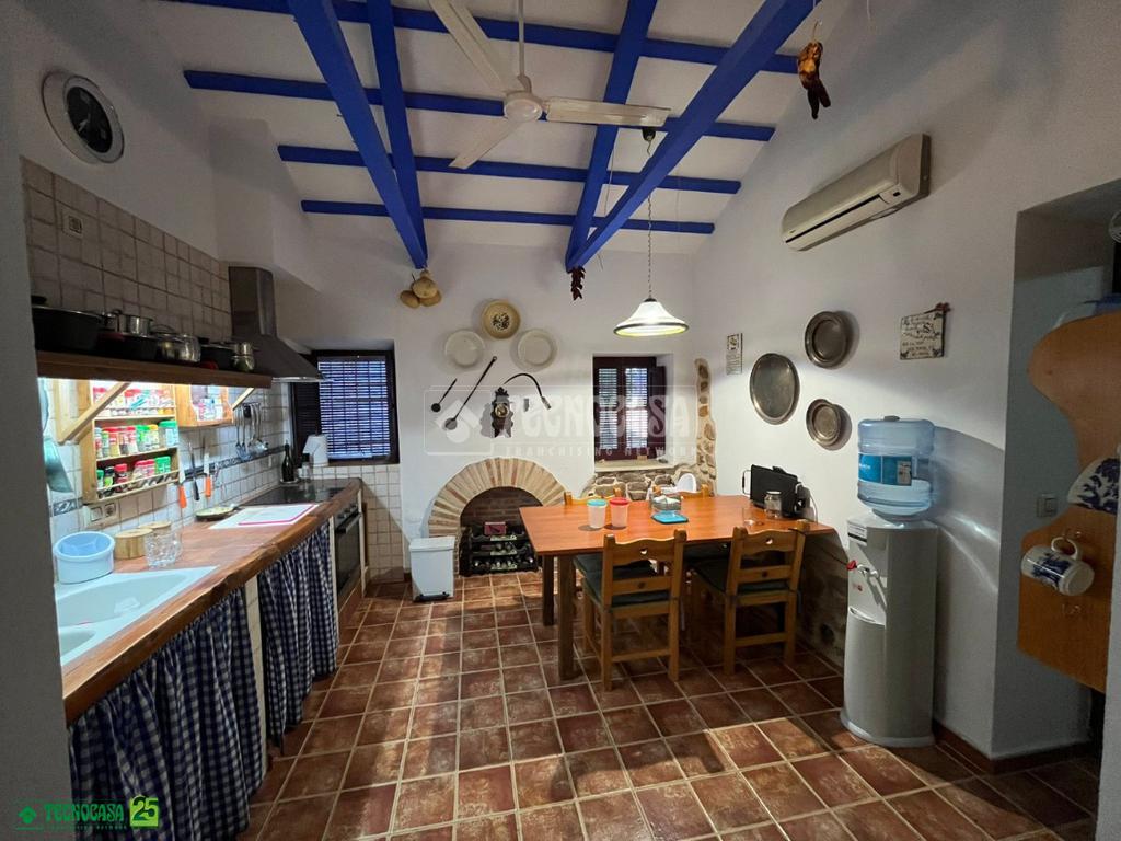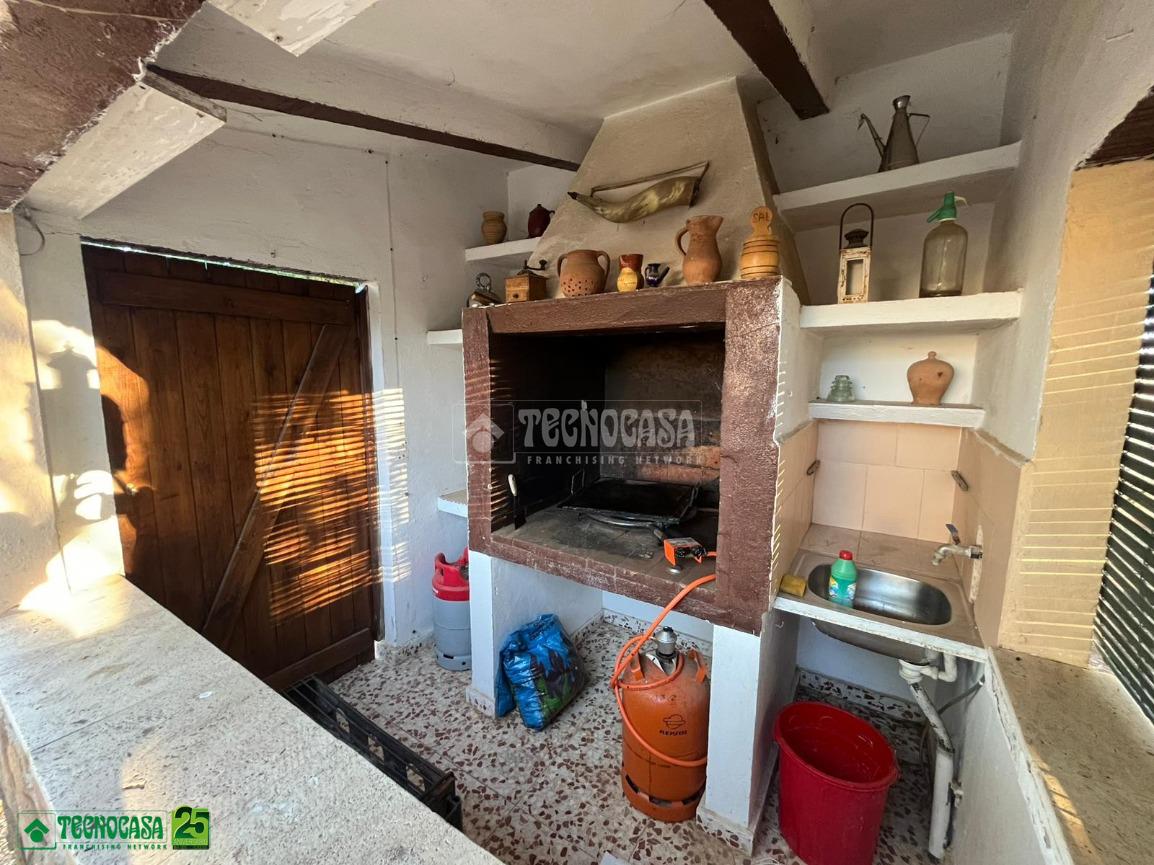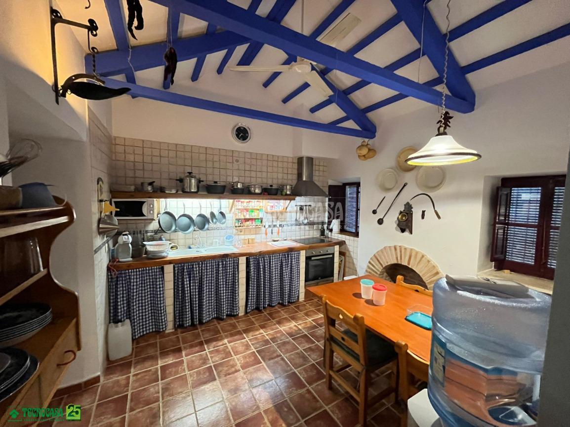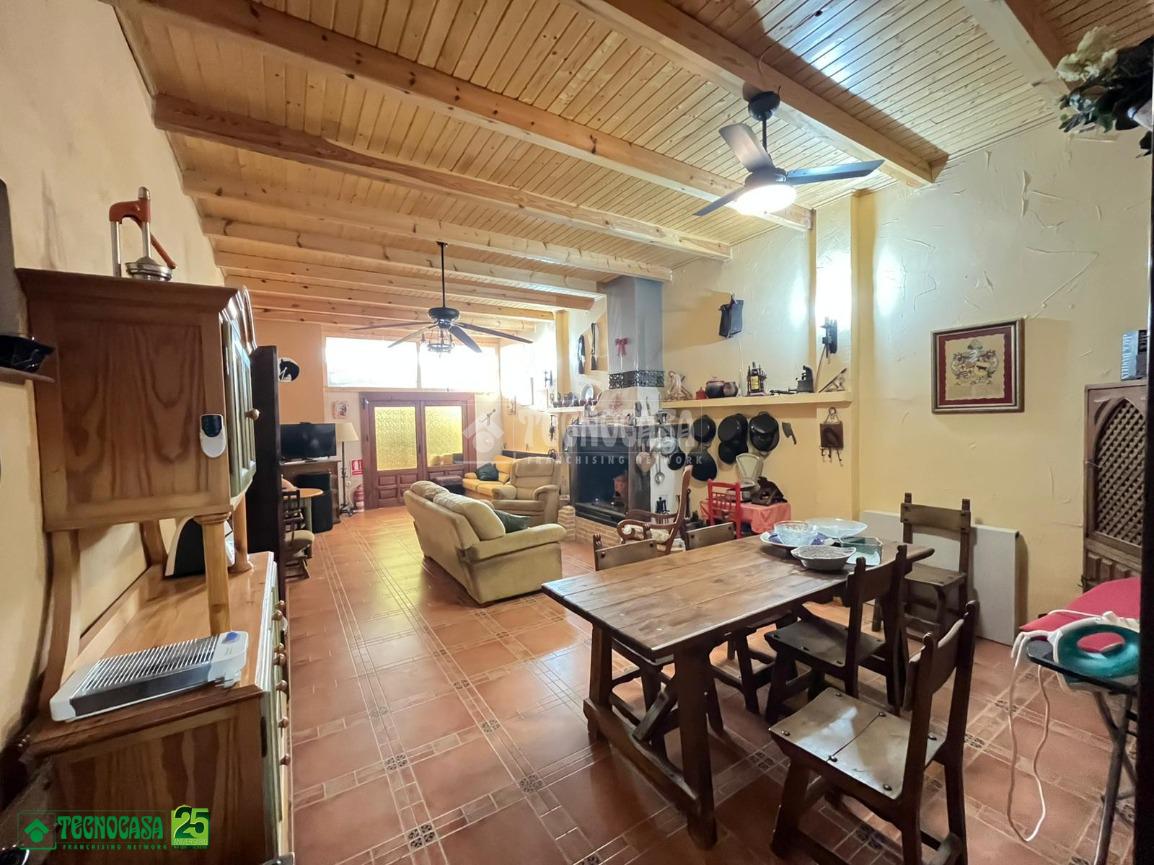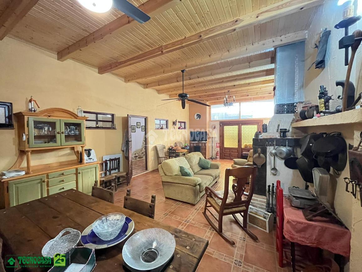 Casa con COCINA COMPLETAMENTE EQUIPADA, salón amplio con dos ambientes y chimenea, porche techado, 2 dormitorios DOBLES, un dormitorio individual, 2 BAÑOS uno completo con plato de DUCHA y un aseo de cortesía y además tiene una cochera CERRADA y distintos habitáculos de almacenamiento. Además cuenta con cocina CAMPERA super amplia también con chimenea.