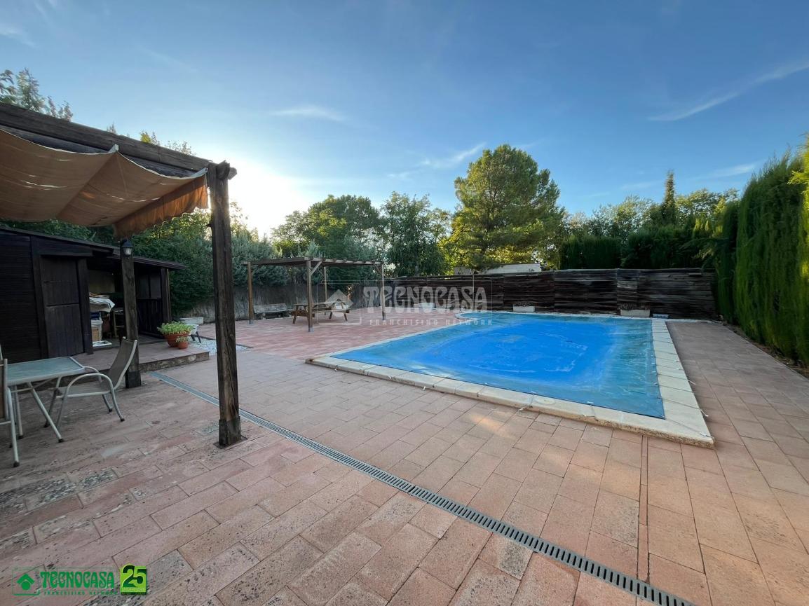 El chalet dispone de PISCINA EXTERIOR, CASETA CON DEPURADORA a la altura del suelo para mejor manejo y una caseta tipo rustico como habitación auxiliar, ARBOLES FRUTALES, gallinero, pozo, aljibe y noria para dar agua a la casa y luz.