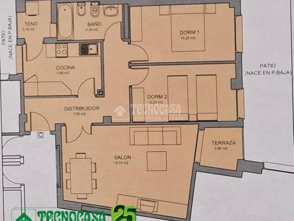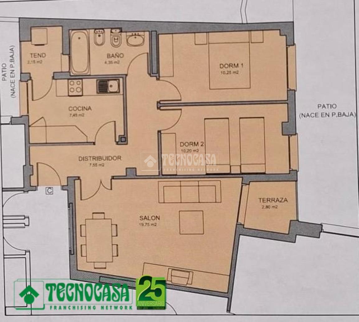 EN VENTA: Piso de 2 dormitorio, salón con acceso a TERRAZA, cocina COMPLETAMENTE EQUIPADA, PATIO lavadero al que se accede desde la cocina y 1 BAÑO COMPLETO con PLATO DE DUCHA.